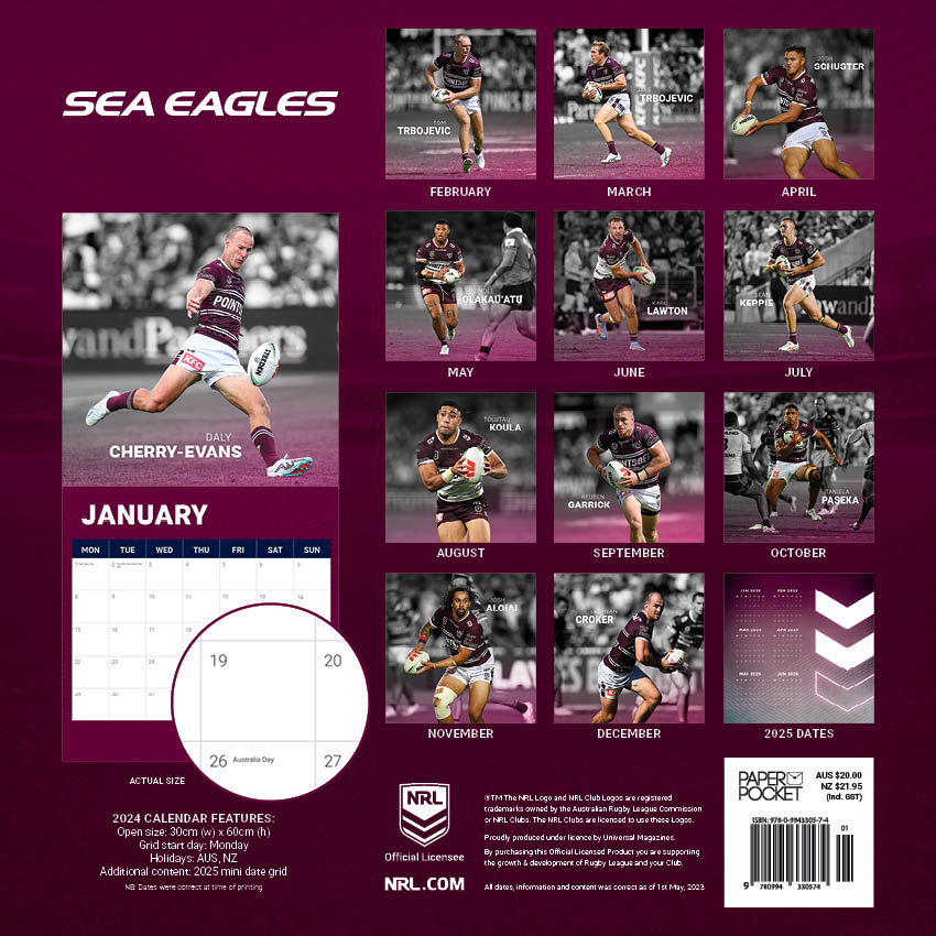 2024 NRL Manly Sea Eagles Calendar | Paper Pocket